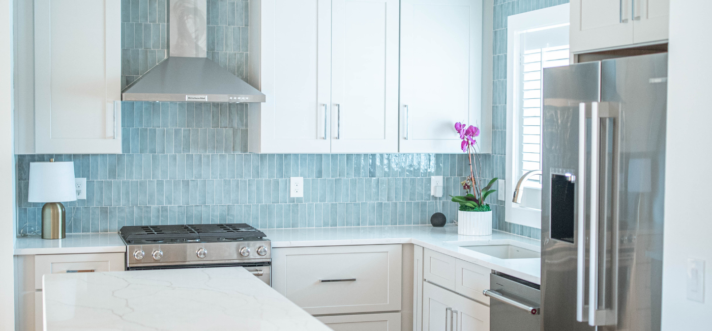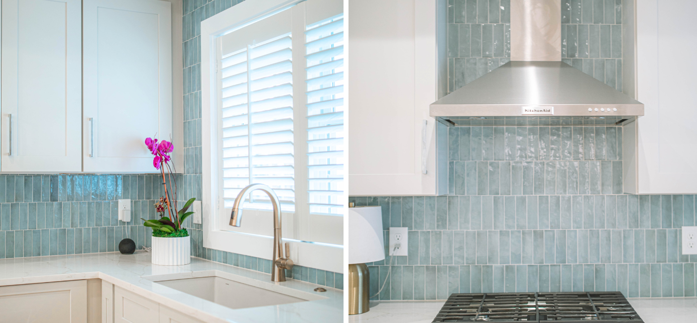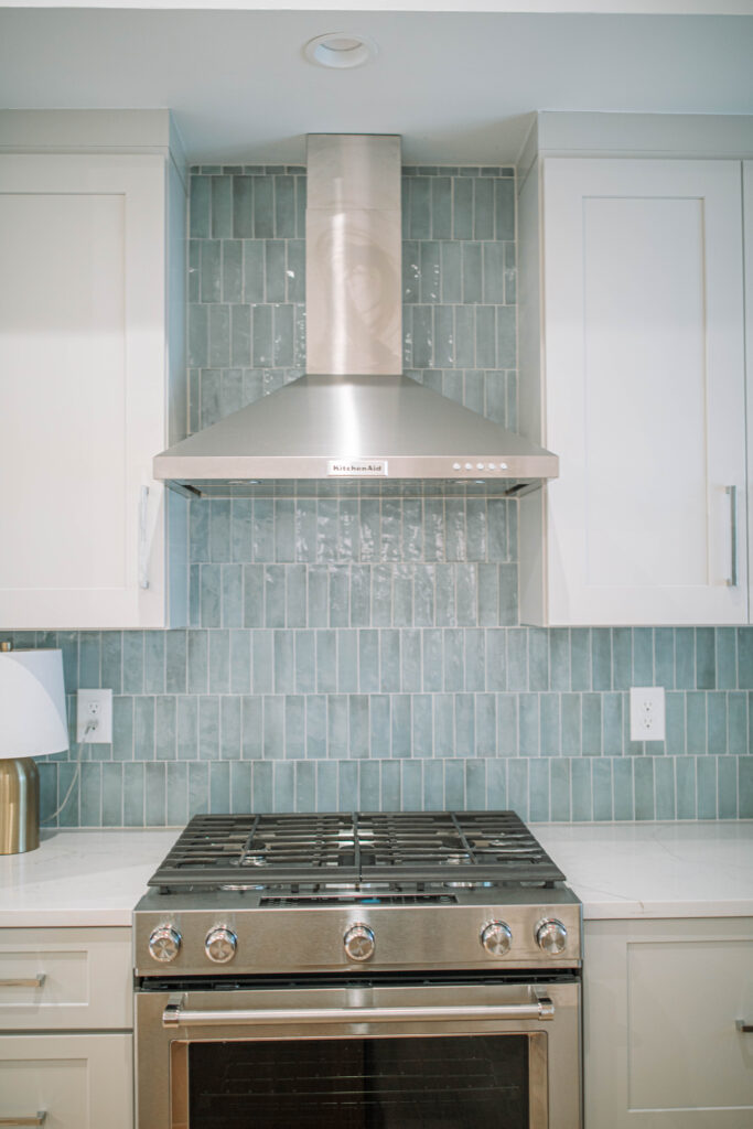- Tile Backsplash: Speartek Savannah Collection in Blue Grass Glossy – 2″ X 6″