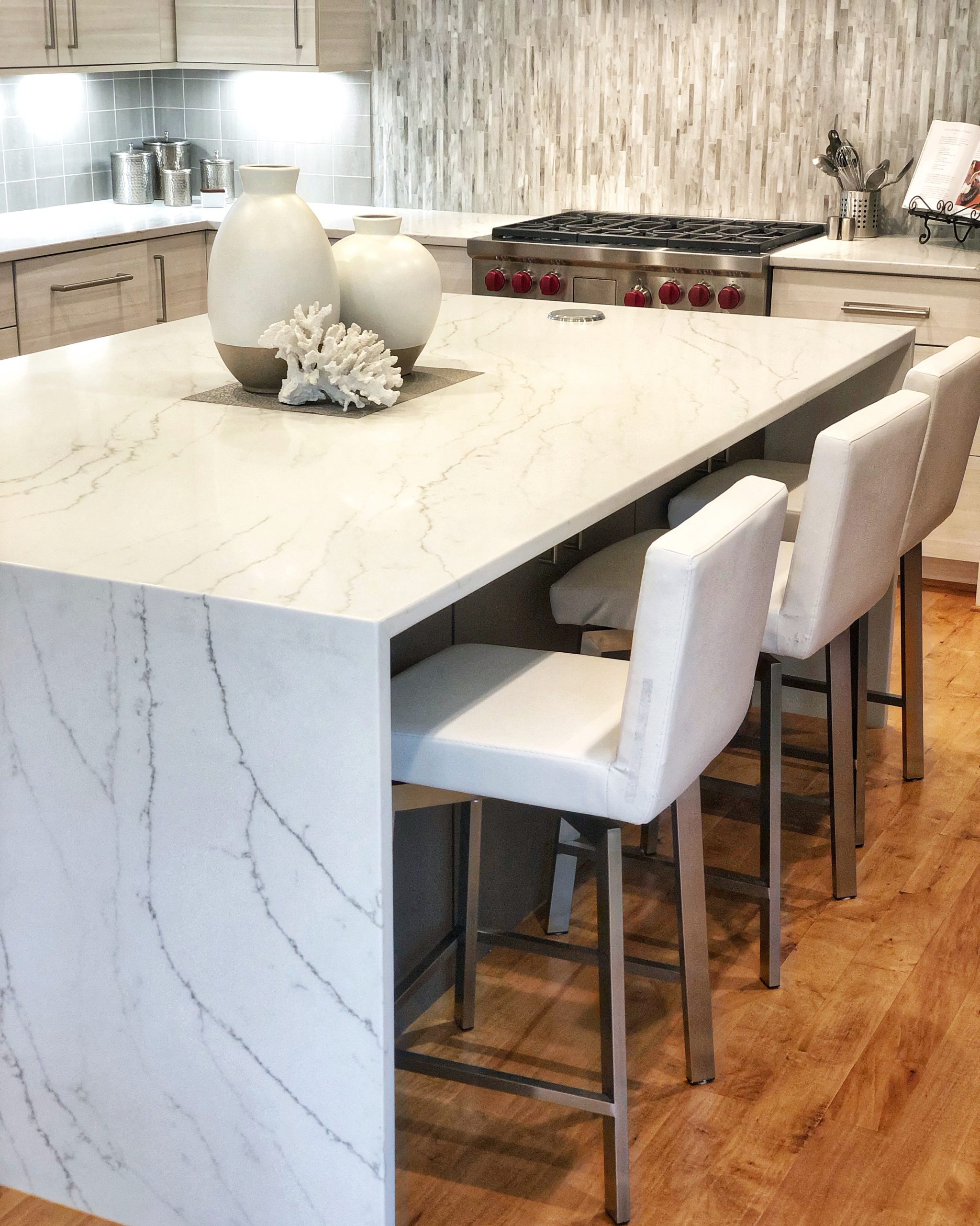 - Countertops: Statuario Nuvo Quartz
