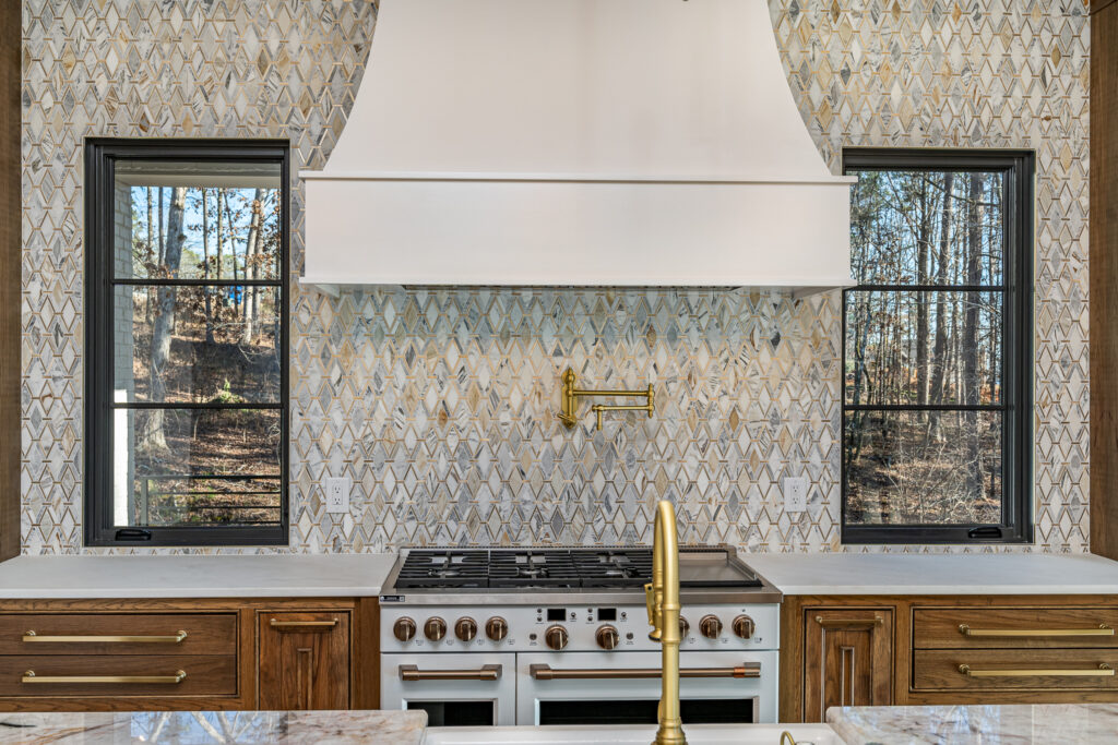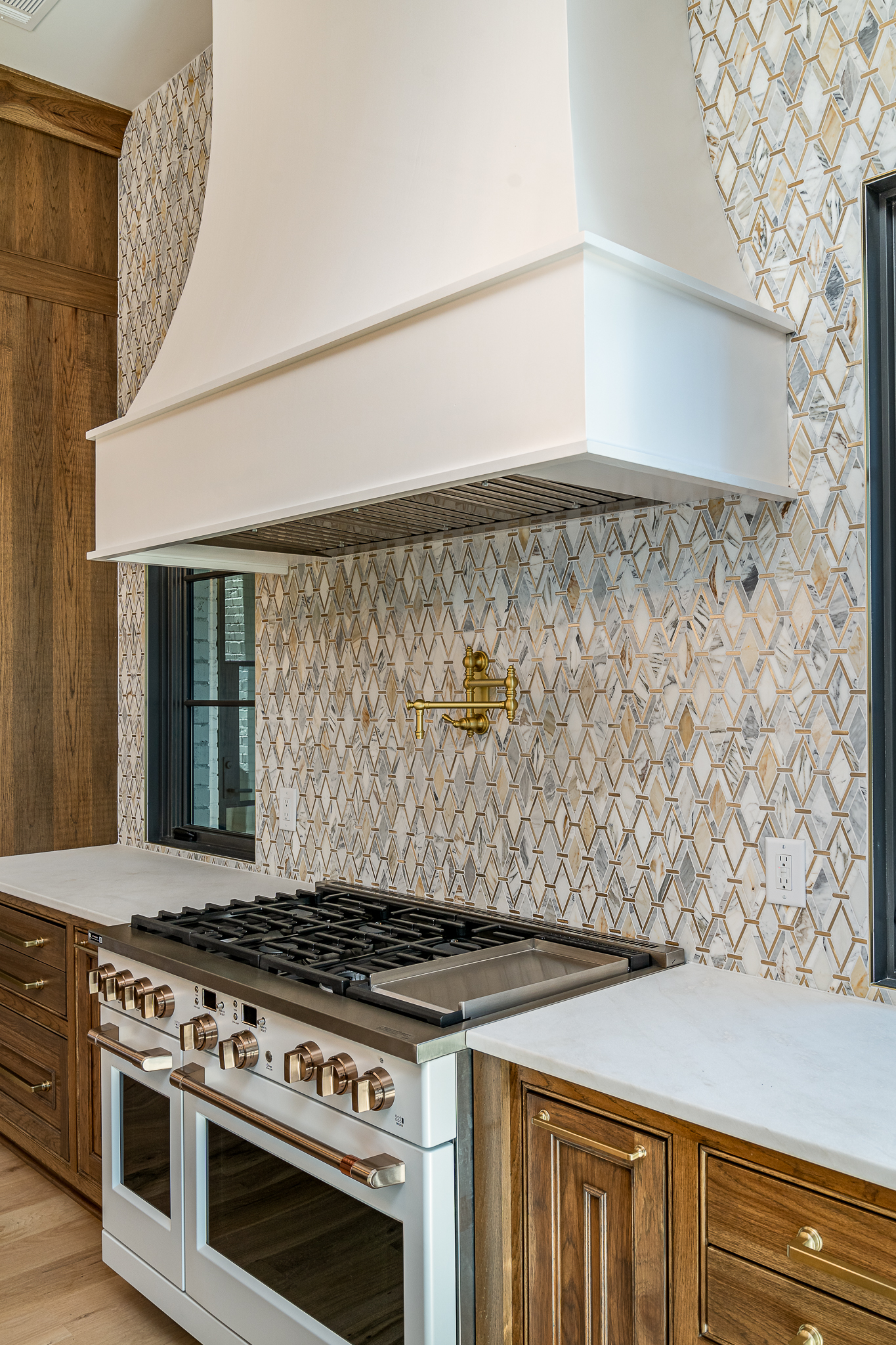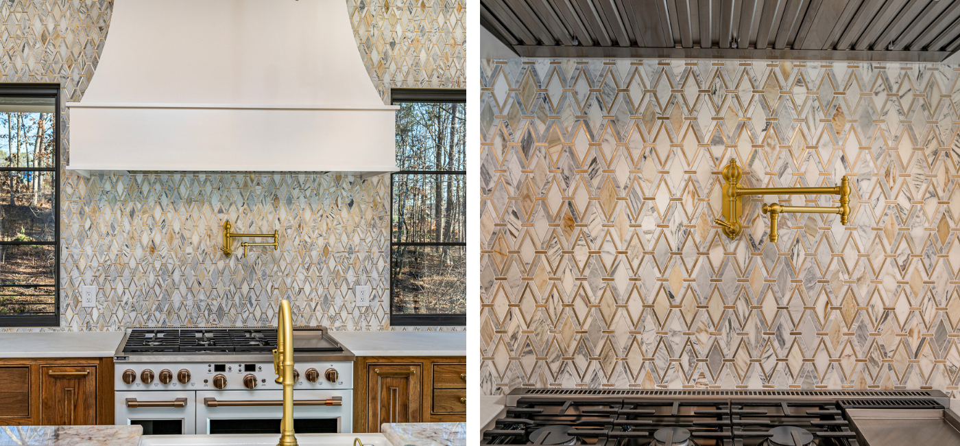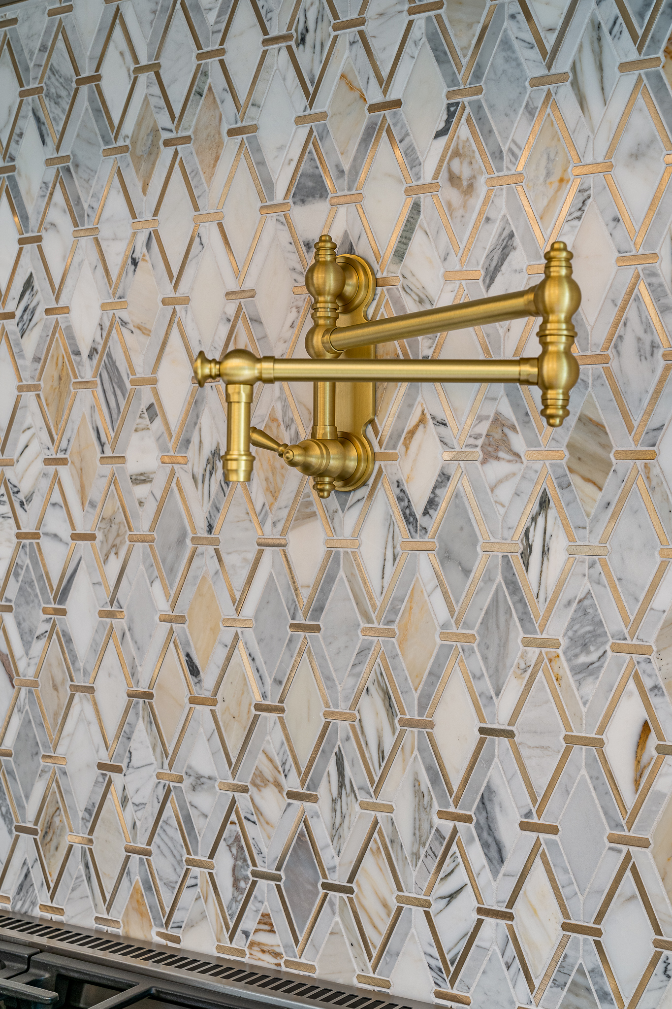 - Tile Backsplash: Interceramic, Calacatta Marble with Gold Metal Accent