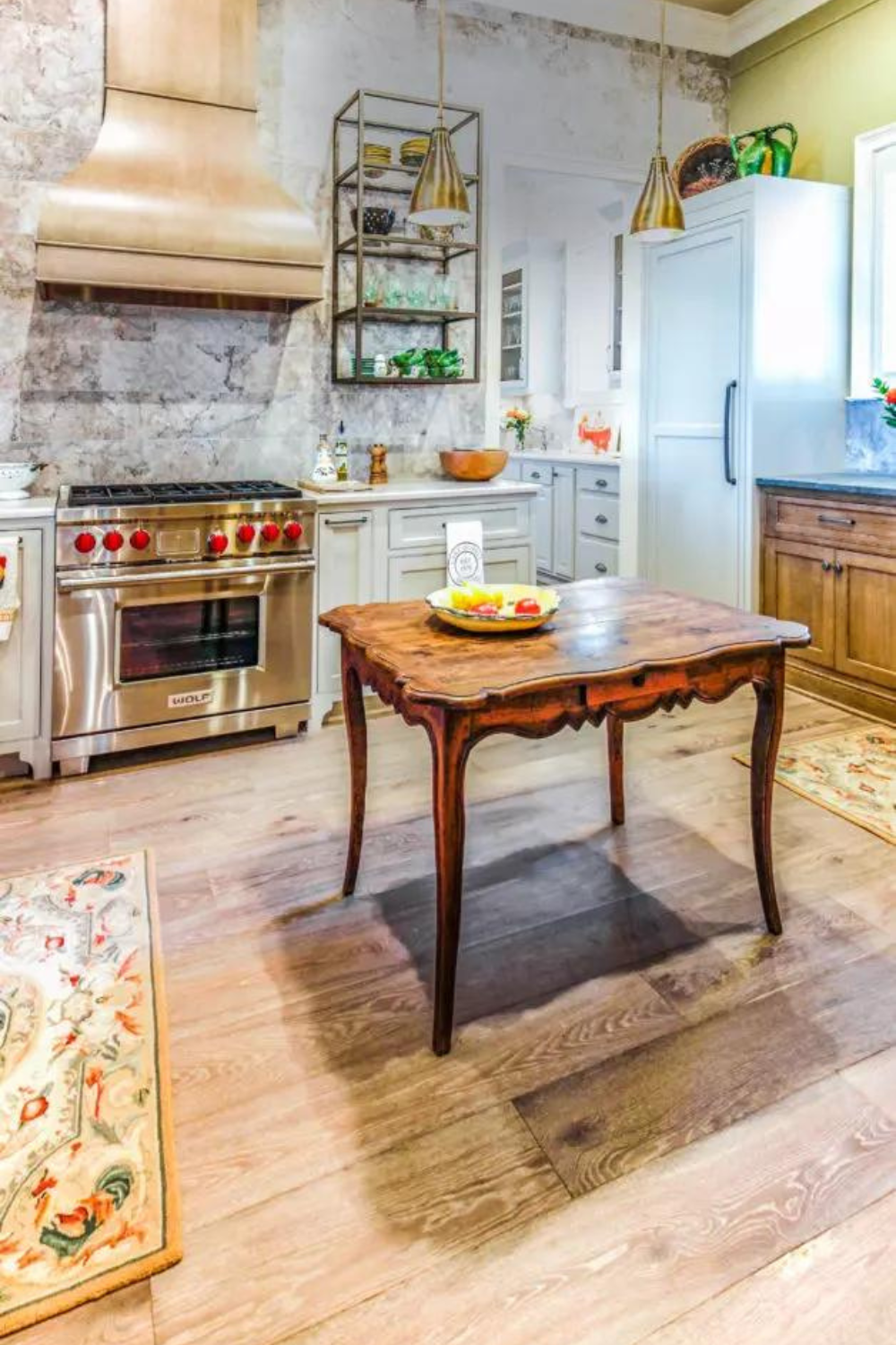 - Cabinetry: Shiloh Inset in Dovetail Gray and Rift Oak Clay Stain