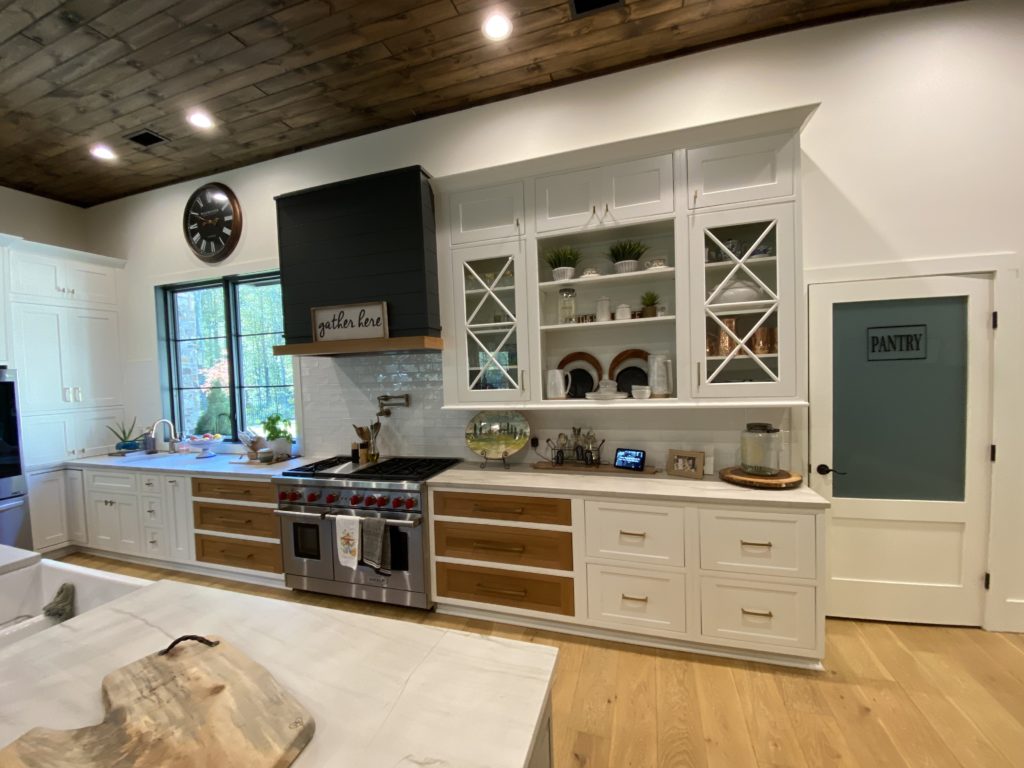 - Cabinetry: Shiloh Beaded Inset in Polar and White Oak Golden Stain