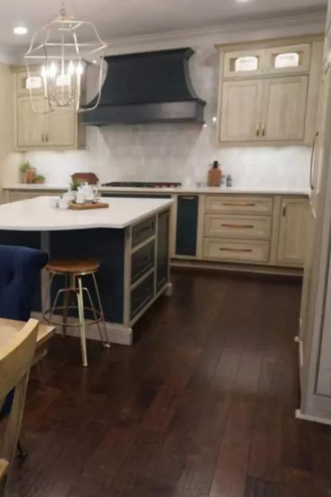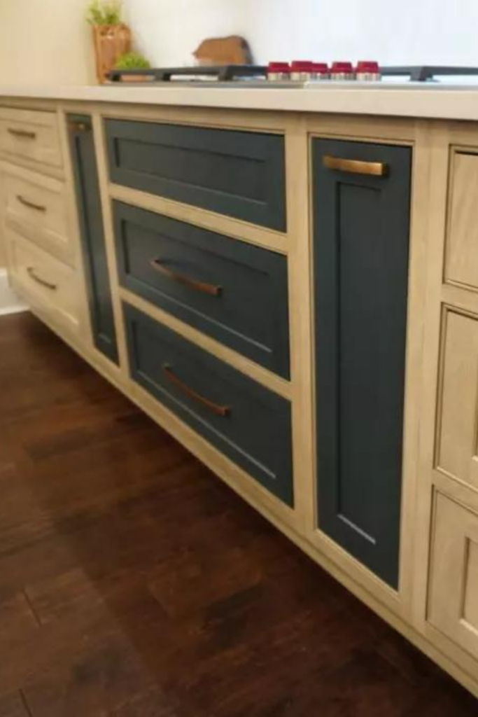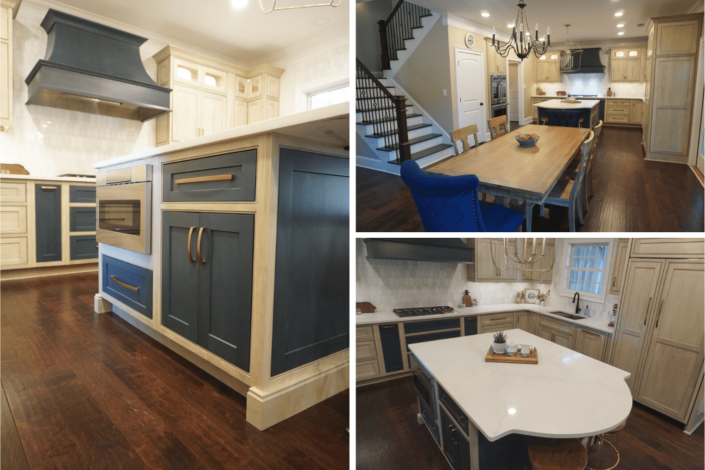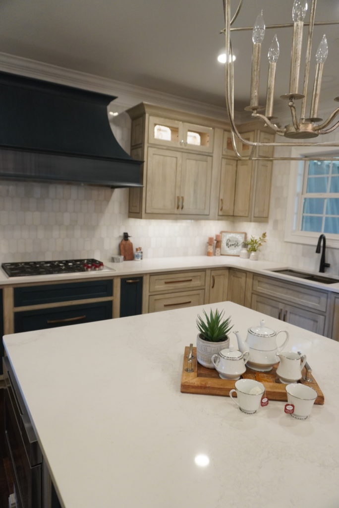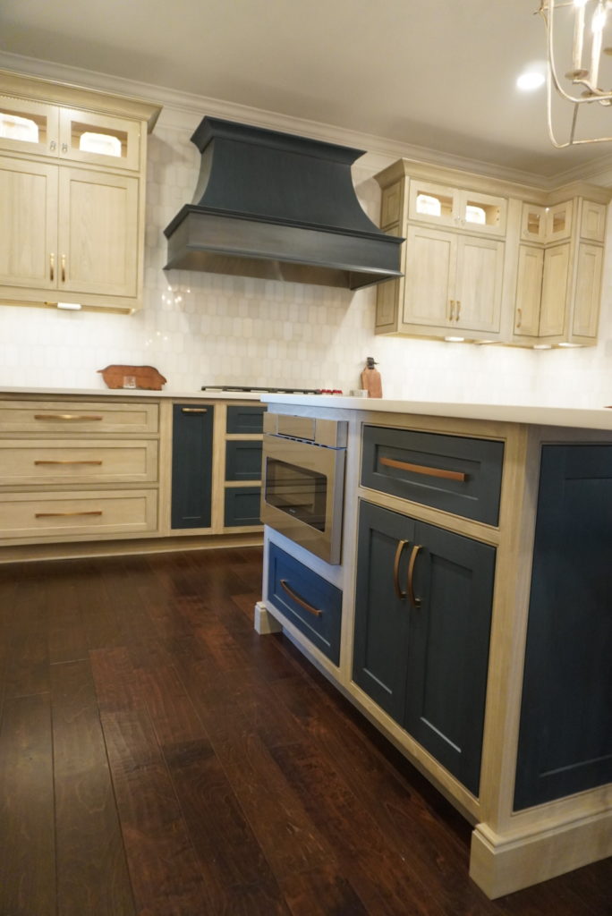 - Cabinetry: Shiloh Inset Hanover Poplar in Seagull & Hudson stains
