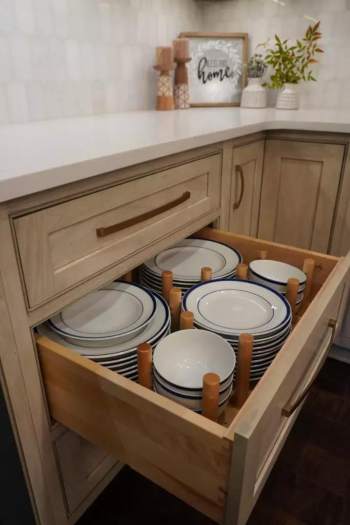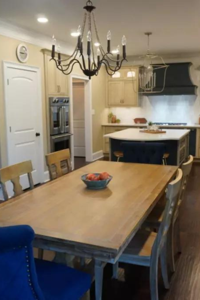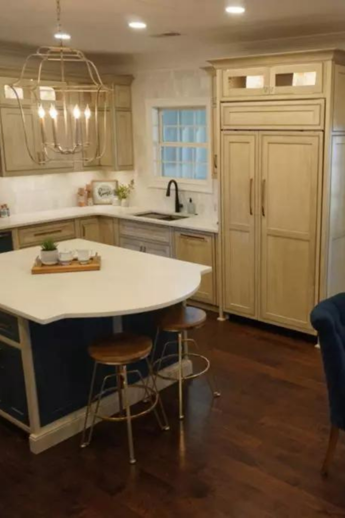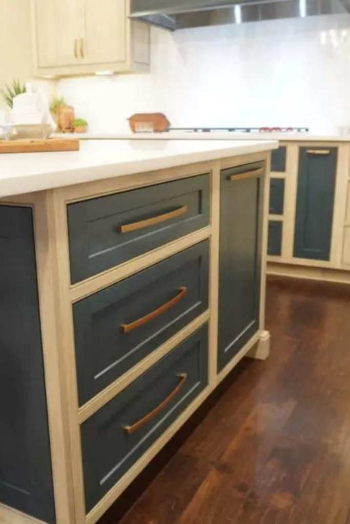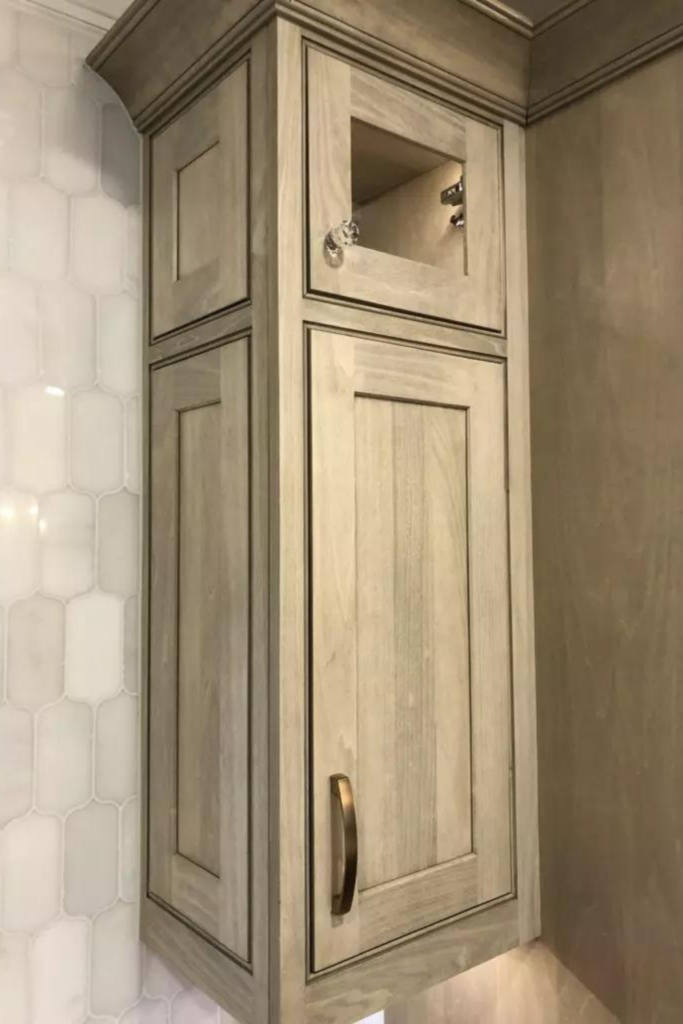 - Cabinetry: Shiloh Inset Hanover Poplar in Seagull & Hudson stains