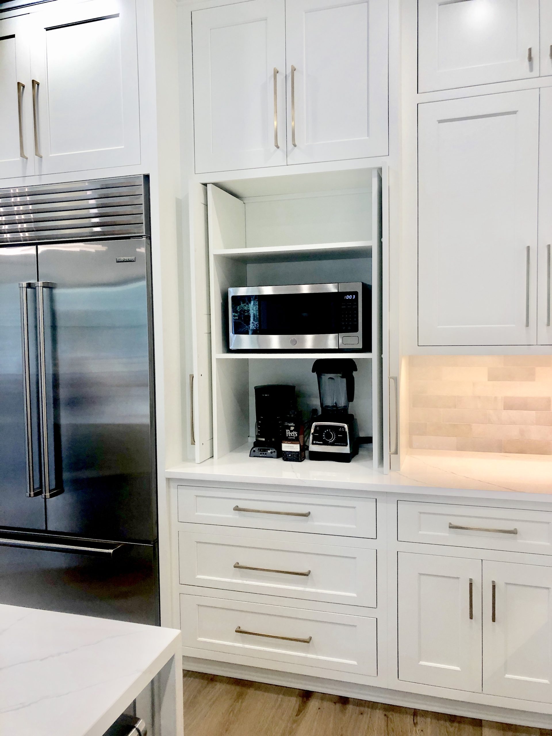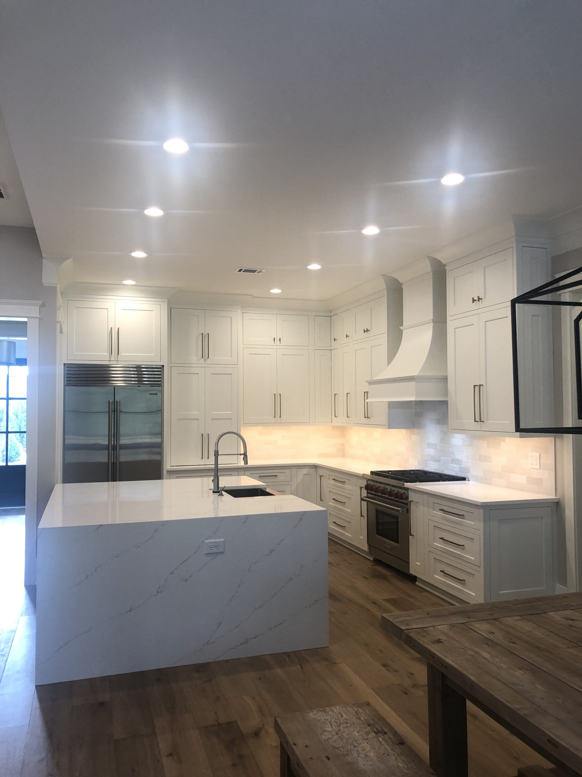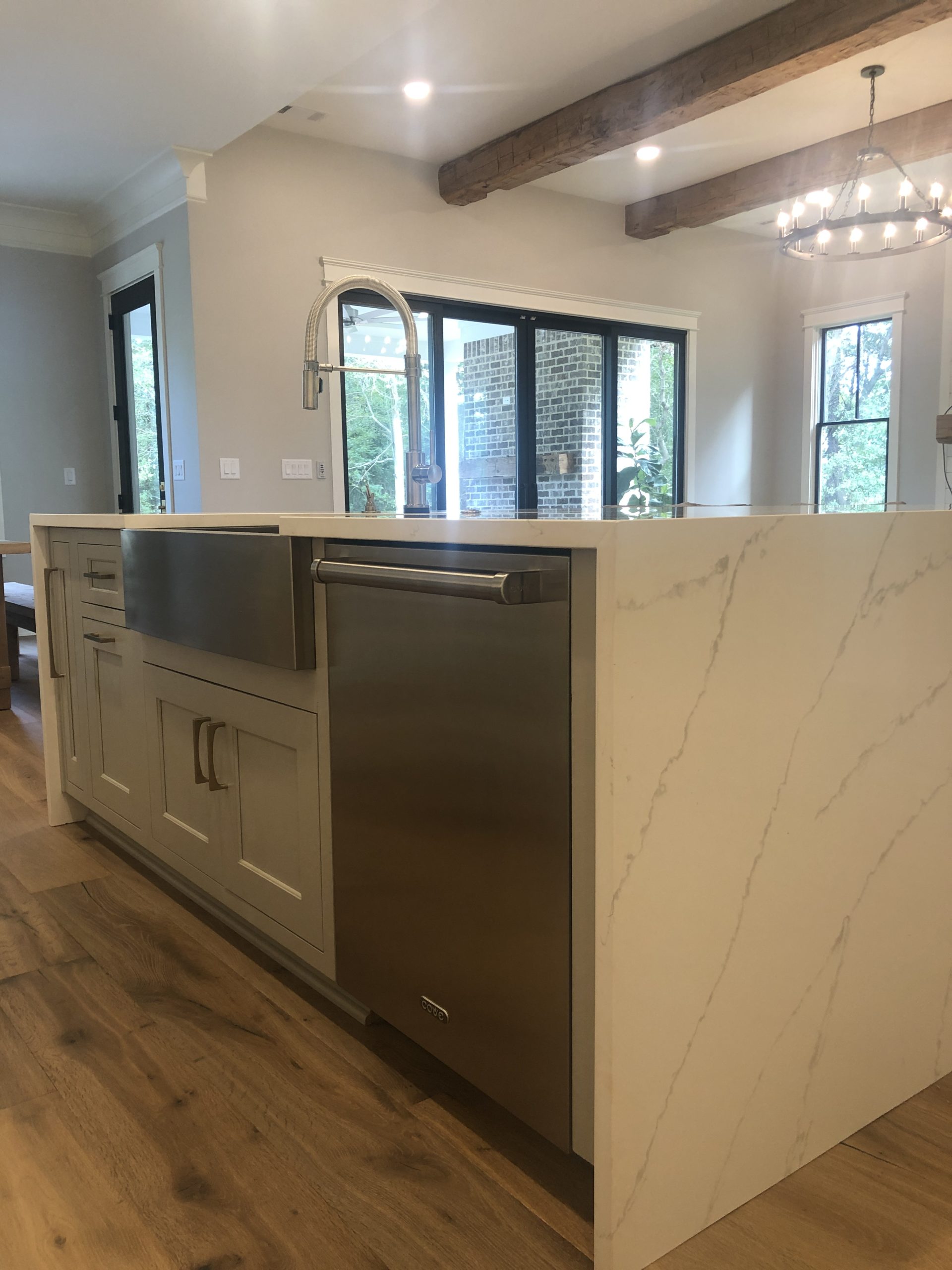 The Kitchen is the heart of the home. It was important to this homeowner that we design a space that allowed for large gatherings and daily family activities. The focal point of the design centered around this large center island that has a gorgeous waterfall quartz countertop. The clients were a joy to work with and were very much a part of the design process.
