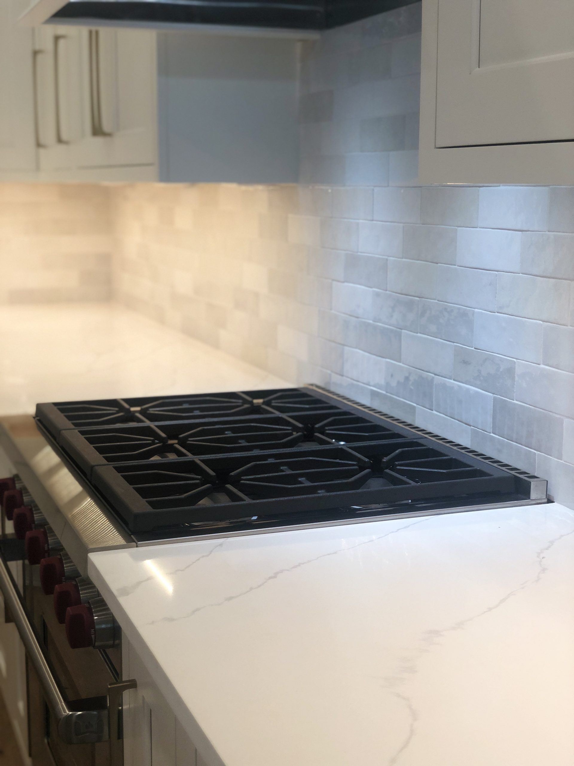 - Backsplash: Riviera White 2.5” x 8” Subway